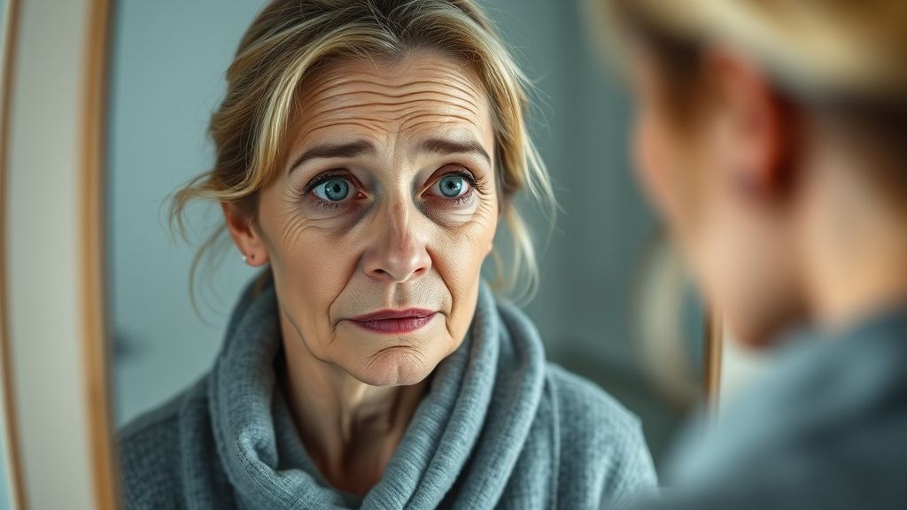 ١ . ظهور تجاعيد وخطوط دقيقة بشكل خاص في الوجه، وترهل الجلد نتيجة فقدان مرونته بمناطق الجسم المختلفة.